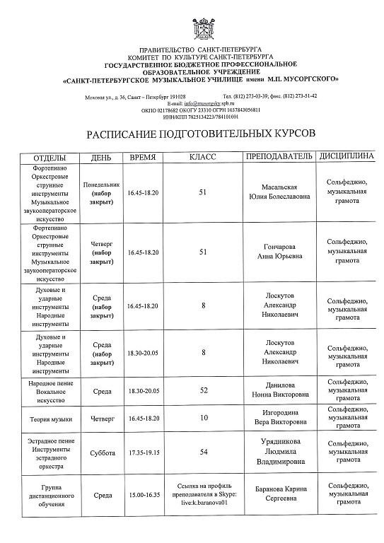 Внимание! Прием на подготовительные курсы для отделений Фортепиано, Оркестровые струнные инструменты, Оркестровые духовые и ударные инструменты, Инструменты народного оркестра и Музыкальное звукооператорское мастерство временно закрыт!