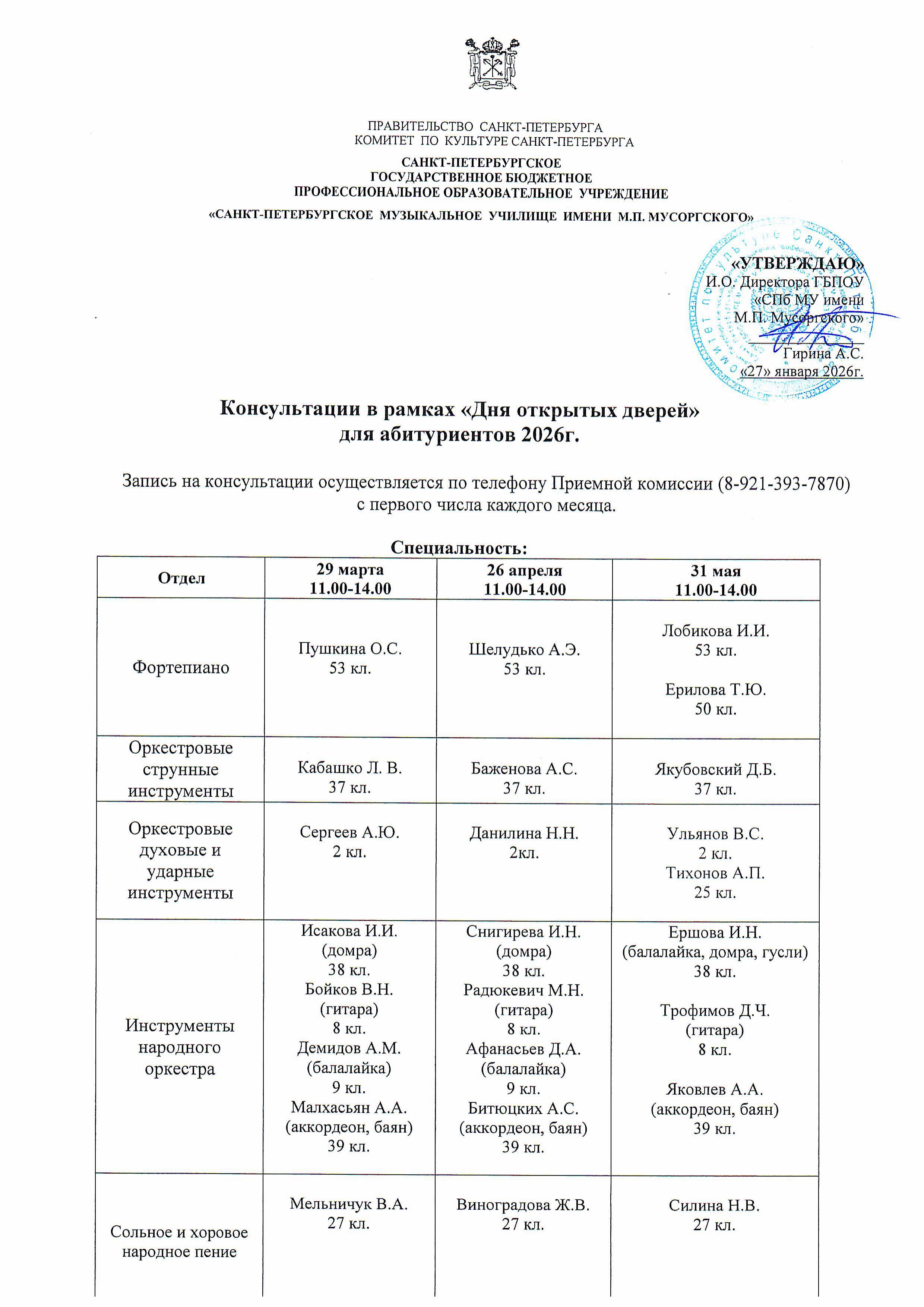 27 января 2026 | 12.00 | Санкт-Петербургское музыкальное училище имени М.П. Мусоргского, класс 43