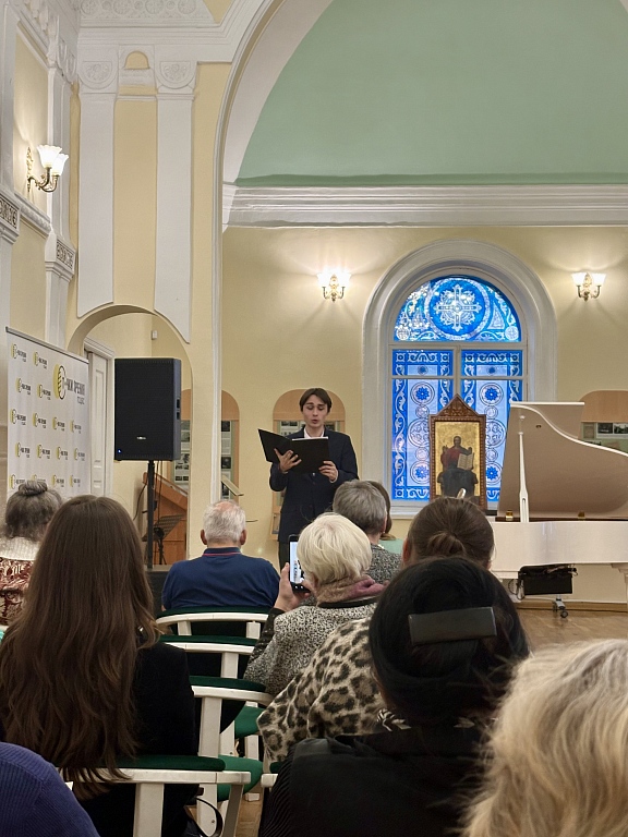 Студенты вокального отделения Санкт-Петербургского музыкального училища имени М.П. Мусоргского подарили слушателям настоящий праздник музыки. Программа концерта впечатлила своим размахом и стилистическим разнообразием. Под сводами зала звучала музыка выдающихся русских и зарубежных композиторов: И.С. Баха, И. Брамса, А. Вивальди, А.С. Даргомыжского, Г.Ф. Генделя, В.А. Моцарта, Н.А. Римского-Корсакова, А.Г. Рубинштейна, П.И. Чайковского, Ф. Шуберта и Р. Шумана.
