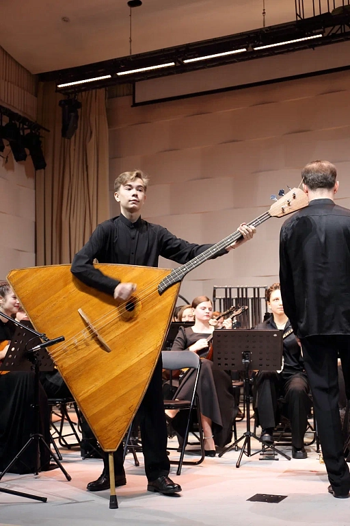 В концерте прозвучали: «Волшебный замок» А. Цыганкова (концерт-симфония для балалайки с оркестром) в исполнении лауреата международных конкурсов Максима Бельника (балалайка, преподаватель — А. М. Демидов); Три фрагмента из балета «Гаянэ» А. Хачатуряна («Танец розовых девушек», «Колыбельная», «Лезгинка»);