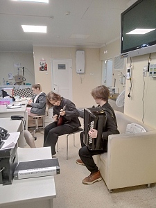 Студенты музыкального училища имени М.П. Мусоргского 27 ноября посетили бойцов СВО в госпитале. В этот раз к раненым вновь приехал талантливый дуэт студентов 3 курса отделения народных инструментов Маргариты Пшенниковой и Ярослава Вахнина , которые исполнили русскую народную песню "Казаки" и «Танго». А также под звуки баяна Маргарита Пшенникова прочитала стихотворение Константина Симонова "Жди меня". Выступление ребят тронуло всех присутствующих.