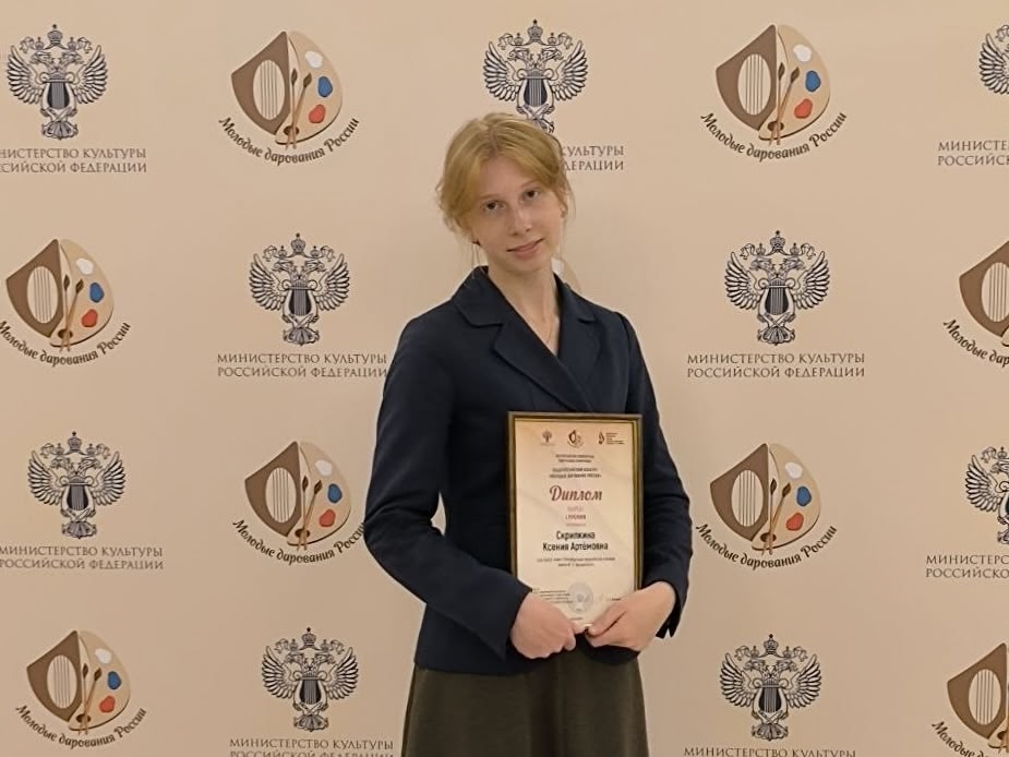 Церемония награждения победителей Общероссийского конкурса «Молодые дарования России» — всероссийской юношеской творческой олимпиады (с международным участием) в Москве прошла замечательно!Среди награжденных была и наша студентка 3 курса оркестрового струнного отдела Ксения Скрипкина (арфа)! Поздравляем!