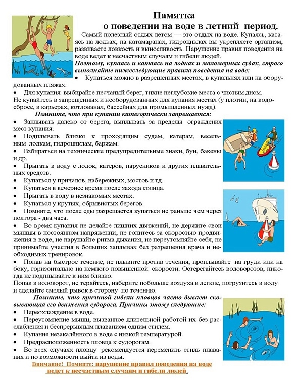 Памятка о поведении на воде в летний период
