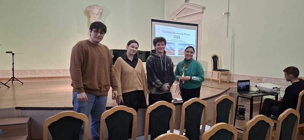 Руководитель физической культуры Анна Сергеевна Баженова поздравила наших спортсменов - студентов III курса отдела духовых и ударных инструментов, завоевавших II место в Спартакиаде "Точные виды спорта" среди студентов средних специальных учебных заведений, расположенных на территории Центрального района г. Санкт-Петербурга 2025/2026 учебного года: