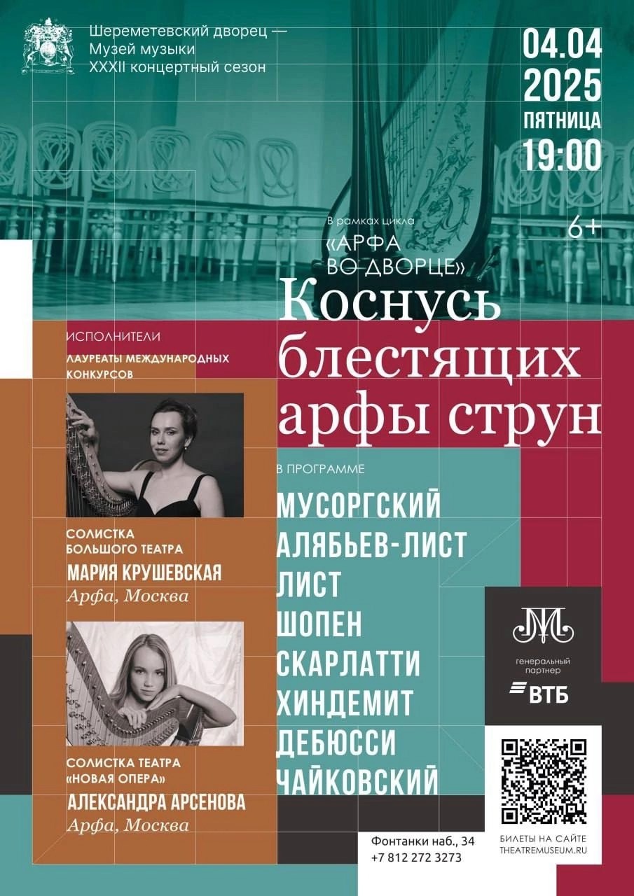 4 апреля в Белом зале Шереметевского дворца состоялся концерт, на котором выступили две знаменитые арфистки - Мария Крушевская и Александра Арсенова. Они блестяще исполнили известные арфовые композиции.Мы с девочками остались под большим впечатлением. Не только послушали, но и пообщались с артистками. Спасибо за организацию и возможность посещения таких мероприятий, это очень ценно!