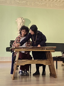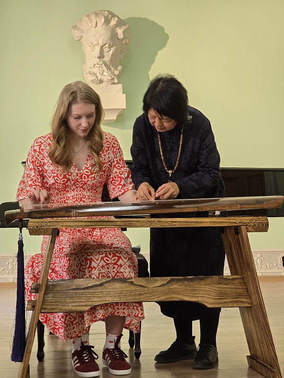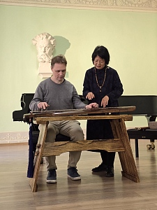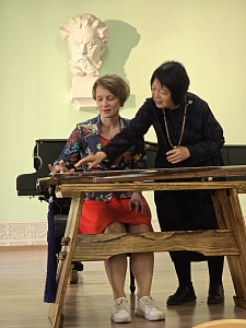 В конце встречи наши гости провели мастер-класс для зрителей, на котором студенты и преподаватели попробовали сыграть на китайском народном инструменте - Гуцинь.