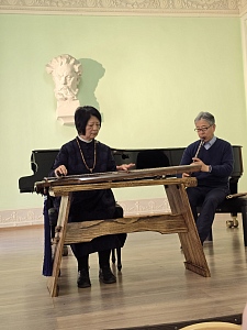 Профессора Тяньцзиньской консерватории, выдающиеся исполнители на традиционных китайских инструментах, исследователи и преподаватели китайской музыки г-жа Ли Фэнъюнь и г-н Ван Цзяньсинь выступили перед зрителями в Большом зале училища.